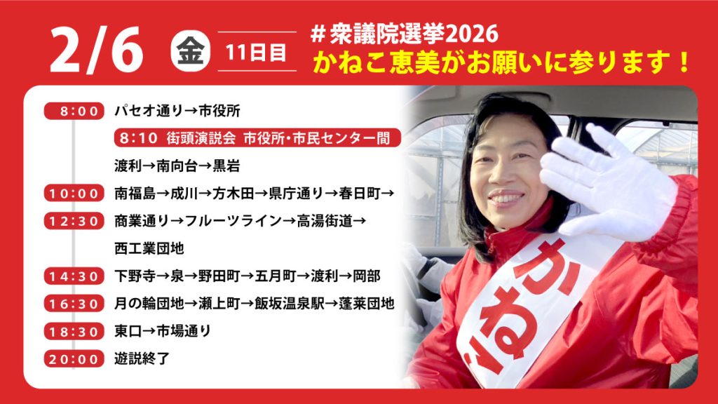 ⚠️交通状況や演説により間が前後したり急遽変更になる場合がございます。リアルタイムの様子はSNSをご確認ください。